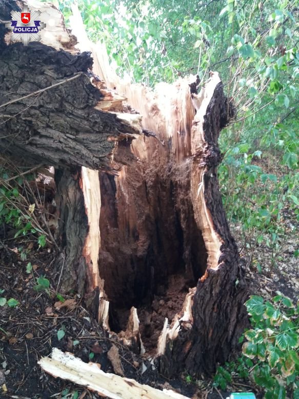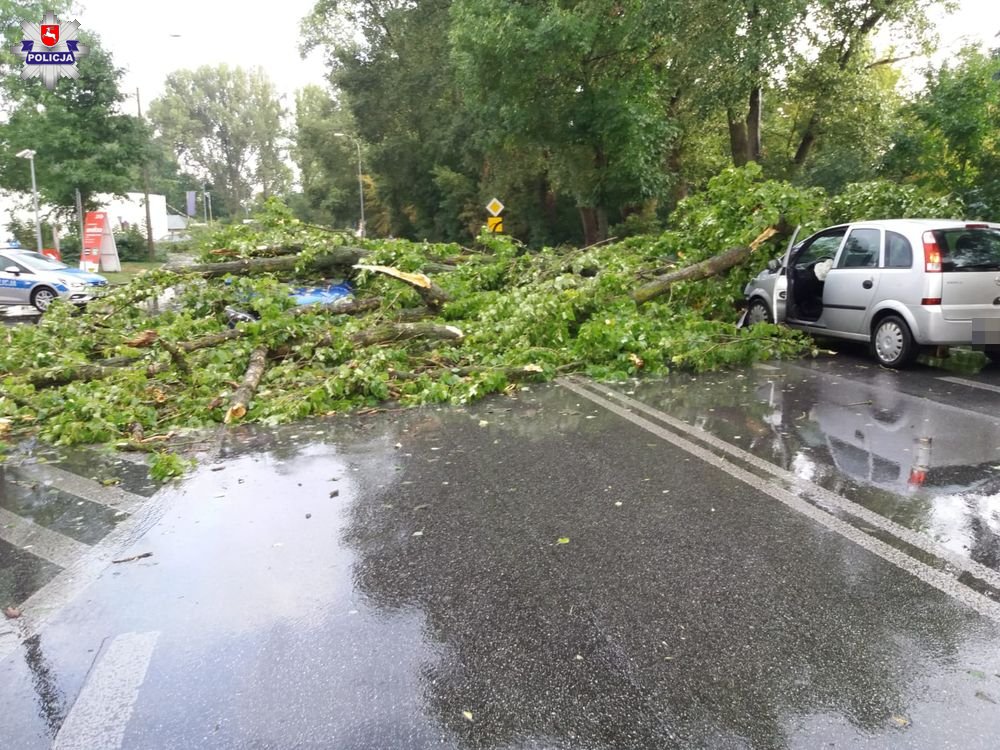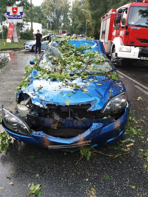W tym samym czasie kilkadziesiąt metrów dalej spadające na jezdnię drzewo uszkodziło dwa przejeżdżające tą samą ulicą auta. Uszkodzeniu uległ samochód osobowy marki Mazda kierowany przez 30–letniego mieszkańca miasta, który podróżował ze swoją rodziną. Drugim z aut tj. osobowym oplem podróżowała 51-letnia mieszkanka gm. Drelów wraz z pasażerką.