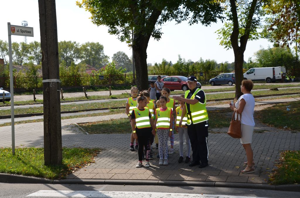 Podczas pogadanki funkcjonariusze przypomnieli uczniom zasady bezpiecznego poruszania się po drogach, a w szczególności bezpiecznego przechodzenia przez jezdnię. Nie zabrakło również informacji o konieczności noszenia elementów odblaskowych. Dzieci dowiedziały się jak w sposób prawidłowy korzystać z chodnika oraz jak zachować się w przypadku jego braku. Policjanci w przystępny dla małych słuchaczy sposób uświadomili im, z jakimi zagrożeniami wiąże się nieprzestrzeganie przepisów ruchu drogowego.