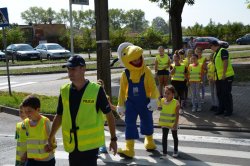 Po tym odbyła się część praktyczna spotkania, podczas której dzieci pod czujnym okiem funkcjonariuszy i opiekunów ćwiczyły swoje umiejętności. W rejonie przejścia dla pieszych na ulicy Łomaskiej trzecioklasiści uczyli się jak bezpiecznie z niego korzystać.