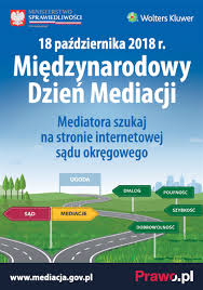 W dniach 15 - 19 października 2018 r., w całej Polsce obchodzony będzie tzw. Tydzień mediacji. To inicjatywa Ministerstwa Sprawiedliwości związana z Międzynarodowym Dniem Mediacji, który od 2005 r. obchodzony jest na świecie w każdy trzeci czwartek października. Idea obchodów Tygodnia mediacji ma na celu dążenie do wzmocnienia roli mediacji, jej promowanie, a przede wszystkim informowanie społeczeństwa o jej zasadach i korzyściach płynących z mediacji.