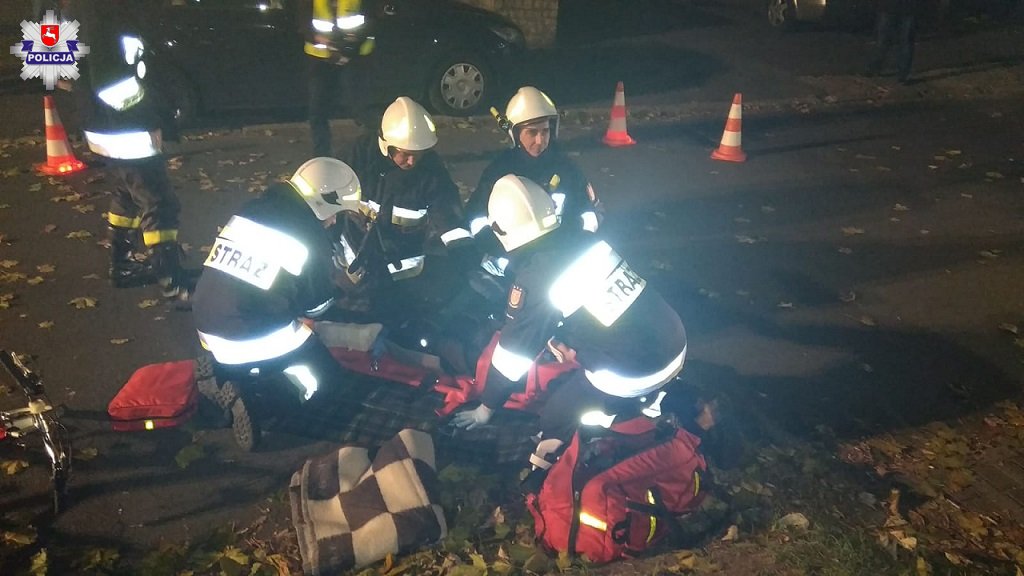 Bialscy policjanci spotkali się z mieszkańcami powiatu w ramach Ogólnopolskiej Akcji Społecznej „Zadbajmy o bezpieczeństwo na naszych drogach". Tym razem kolejna odsłona akcji odbyła się w rejonie bialskiego kina „Merkury”. W sobotę około godz. 20:40 osoby wychodzące z seansu filmowego, jak również osoby idące do kina zauważyć mogły niecodzienny widok. Funkcjonariusze razem ze strażakami z OSP „Sidorki” Biała Podlaska, Zastępcą Dyrektora Word w Białej Podlaskiej Panem Arkadiuszem Maksymiukiem oraz inicjatorem akcji Panem Bogumiłem Lubańskim przygotowali dla mieszkańców inscenizację wypadku drogowego. Zgodnie za założeniami scenariusza doszło tam do potrącenia jadącej rowerem dziewczynki. Na szczęście były to tylko działania mające na celu zwrócenie uwagi na konieczność korzystania przez niechronionych uczestników ruchu drogowego z odblasków.