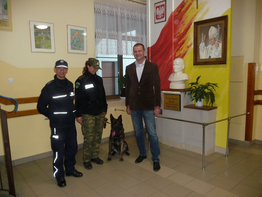 Uczniowie mogli z bliska zobaczyć namiastkę pracy czworonogów, które specjalizują się w wyszukiwaniu narkotyków. Dowiedzieli się również w jakich sytuacjach wykorzystuje się ich umiejętności w walce z przestępczością narkotykową.