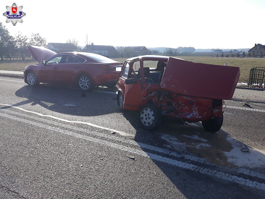 Wczoraj przed południem na drodze K-2 w miejscowości Tłuściec doszło do wypadku drogowego. 92-letni kierowca fiata zderzył się z osobową mazdą. W wyniku wypadku obrażeń ciała doznał kierowca ”malucha”. Policjanci ustalają wszystkie okoliczności zdarzenia oraz apelują o rozwagę na drodze.
