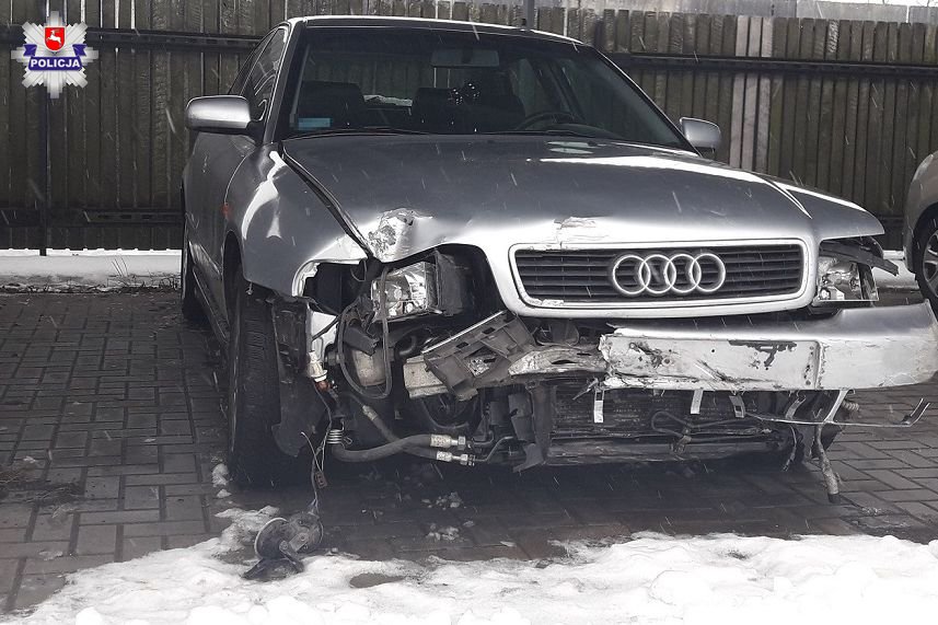 Do zdarzenia doszło w nocy z poniedziałku na wtorek na ul. Nowej w Białej Podlaskiej. Przed godz. 23:00 policjanci Wydziału Ruchu Drogowego zauważyli jadące audi. Samochód wzbudził ich podejrzenia, dlatego postanowili zatrzymać go do kontroli. Wówczas kierowca przyspieszył nie reagując na polecenia policjantów. Mundurowi ruszyli za nim w pościg. Siedzący za kierownicą audi, nie reagował również na sygnały świetlne i dźwiękowe. W miejscowości Sławacinek Stary, kierowca stracił panowanie nad pojazdem i uderzył w ogrodzenie i bramę posesji.