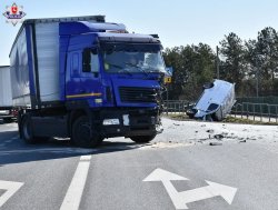 Do wypadku doszło wczoraj rano na krajowej „dwójce” w miejscowości Woskrzenice Duże. Ze wstępnych ustaleń wynika, że kierujący samochodem ciężarowym marki Maz, wykonując manewr skrętu w lewo, na stację paliw, zderzył się z jadącym z przeciwka busem. Ciężarówką kierował 45-letni obywatel Białorusi. Drugim autem kierował 49-letni mieszkaniec Białej Podlaskiej.