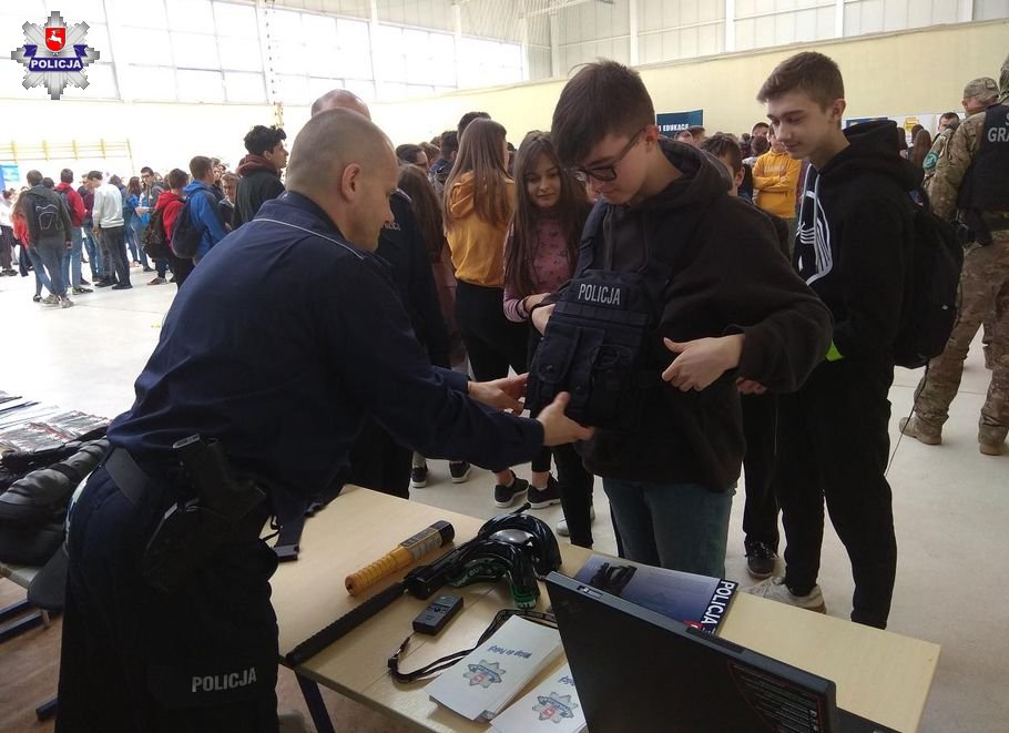 Policjanci bialskiej komendy uczestniczyli w II Międzynarodowych Targach Pracy i Edukacji. Impreza odbyła się w hali sportowej Miejskiego Ośrodka Kultury w Terespolu. Funkcjonariusze przygotowali dla odwiedzających stoisko policyjne. Odpowiadali też na pytania na temat umiejętności i predyspozycji niezbędnych do wykonywania zawodu policjanta.
