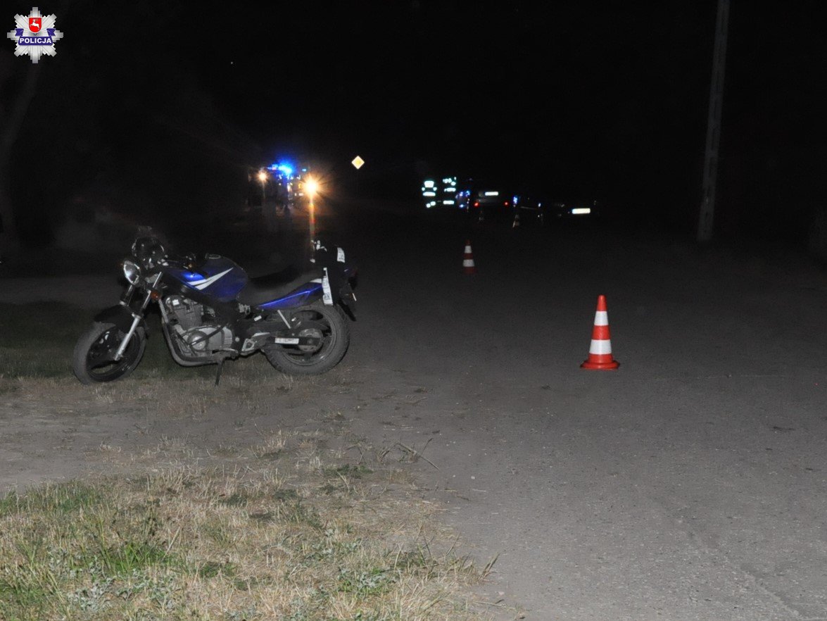 Do zdarzenia doszło w poniedziałek po godz. 21:00 w miejscowości Wólka Polinowska. Ze wstępnych ustaleń wynika, że kierujący motocyklem marki Suzuki, potrącił pieszego, który nagle wtargnął na jezdnię. Jednośladem kierował 17-letni mieszkaniec gm. Konstantynów, nie posiadający uprawnień do kierowania. W chwili zdarzenia młodzieniec był trzeźwy. Potwierdziło to przeprowadzone przez mundurowych badanie.