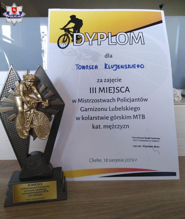 Funkcjonariusze Komisariatu Policji w Terespolu stanęli na podium podczas Mistrzostw Policjantów Garnizonu Lubelskiego w kolarstwie MTB, które odbyły się wczoraj w Janowie, w gm. Chełm. Mł. asp. Tomasz Klujewski zajął III miejsce w kategorii mężczyzn, utrzymując tym samym ubiegłoroczną lokatę. Również drużynowo wspólnie z asp. szt. Zbigniewem Madoniem funkcjonariusze uplasowali się na III miejscu.