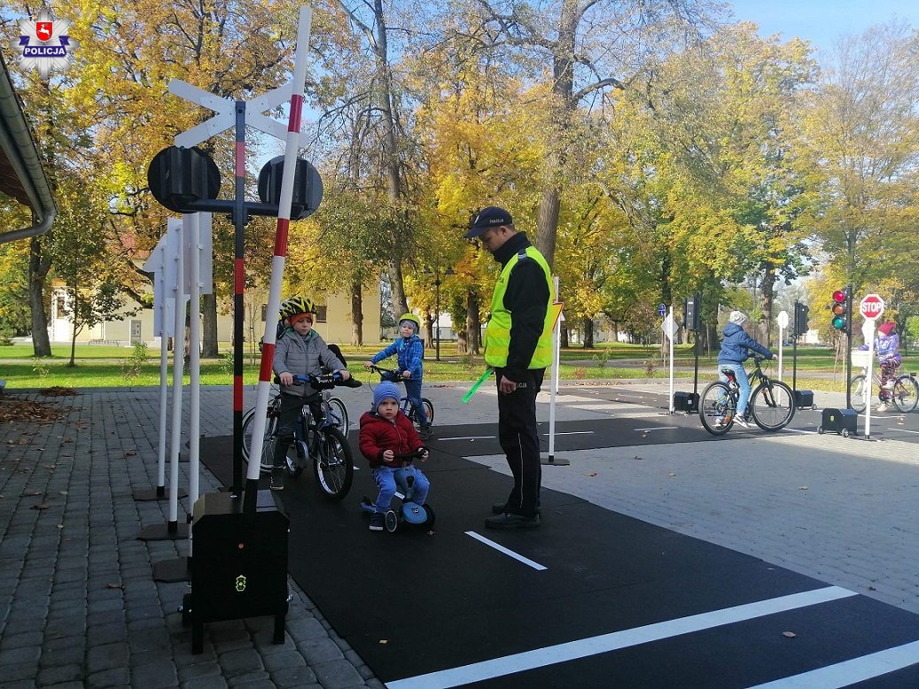 Jak zachować się dojeżdżając do przejazdu kolejowego? Jak poruszać się rowerem po drodze oraz wiele innych zasad ruchu drogowego poznały dzieci, które w sobotę przyjechały do Parku Potockich w Międzyrzecu Podlaskim, gdzie działało mobilne miasteczko ruchu drogowego. Zajęcia prowadził sierż. szt. Piotr Grzeszyk z Zespołu Dzielnicowych Komisariatu Policji w Międzyrzecu Podlaskim.