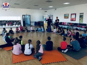 W ramach akcji „Bezpieczne Ferie” policjanci z Międzyrzeca Podlaskiego spotkali się z dziećmi wypoczywającymi na półkoloniach organizowanych przez Centrum Aktywności Lokalnej. Podczas spotkania rozmawiano na temat szeroko rozumianego bezpieczeństwa, zarówno podczas kończącego się już wypoczynku zimowego jak również przez okres całego roku.
