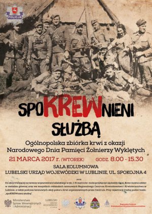 „SpoKREWnieni służbą” to nazwa ogólnopolskiej akcji, nad którą patronat objął Minister Spraw Wewnętrznych i Administracji Pan Mariusz Błaszczak. Akcja związana jest z dniem 1 marca, w którym obchodzimy Narodowy Dzień Pamięci „Żołnierzy Wyklętych”. Święto to zostało ustanowione na cześć żołnierzy zbrojnego podziemia, którzy przelali krew w obronie Niepodległości Polski.